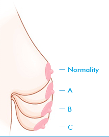 Stage A: ระดับของหัวนมอยู่ใต้เส้นระดับเต้านม หรืออยู่ต่ำกว่าเส้น 1 cm
