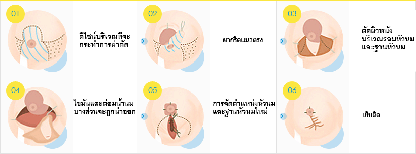 - การผ่ากรีดรอบฐานหัวนม (เทคนิครอยแผลต่ำกว่าหัวนม)